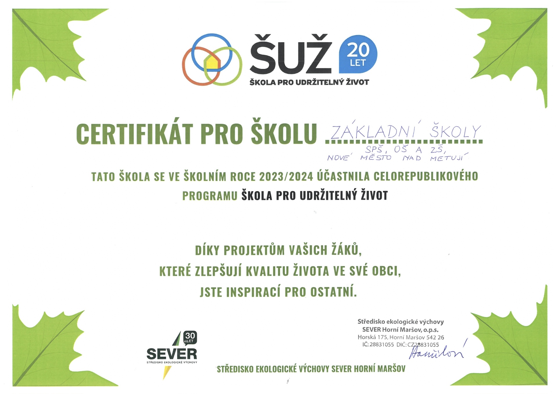 Certifikát ŠKOLA DOPORUČENÁ ZAMĚSTNAVATELI 2023